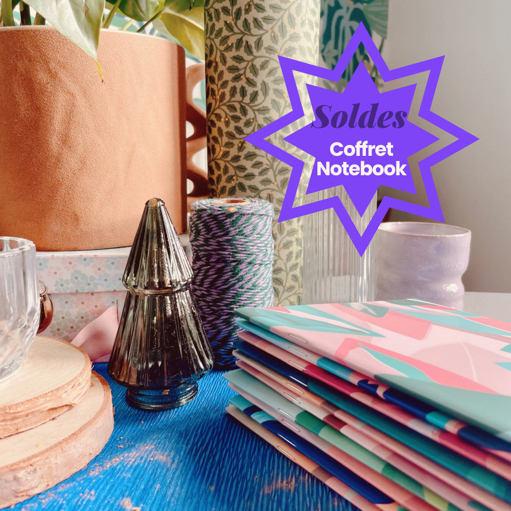 Le coffret NOTEBOOK contient 6 notebooks (coloris : Canopée + Désert + Éden + Azur + Fjord + Jungle Rose)