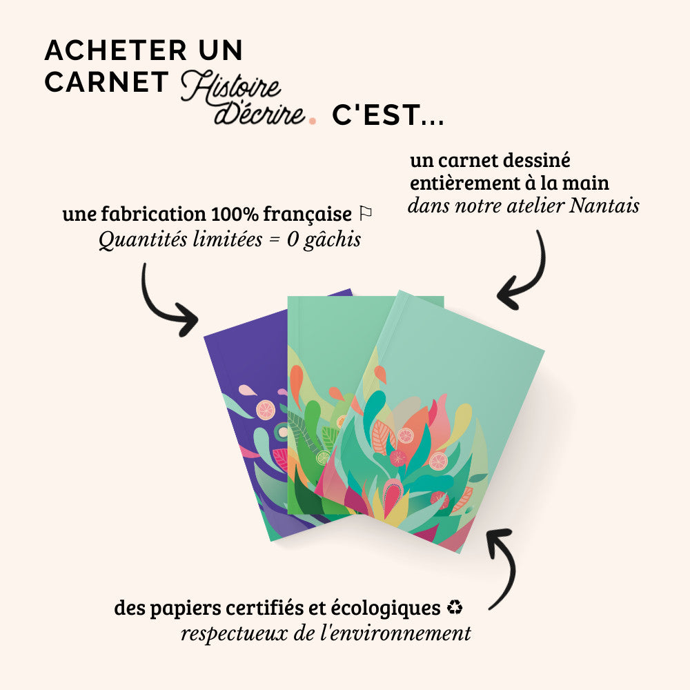 • format A5 (14,5x21cm) souple et léger pour l'emmener partout,