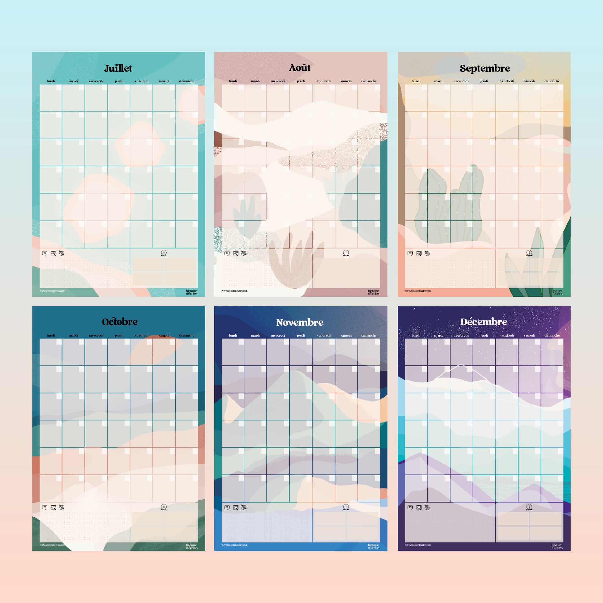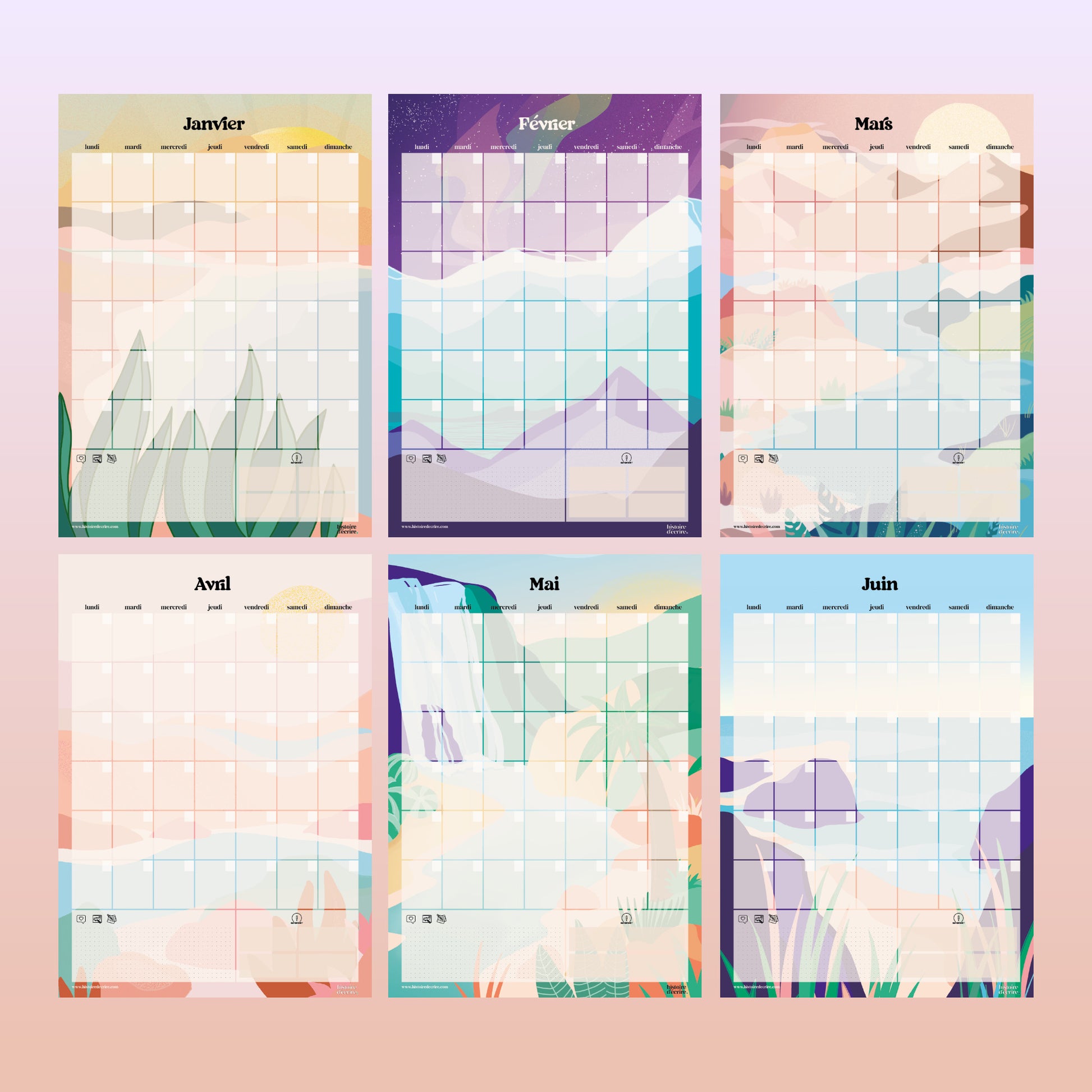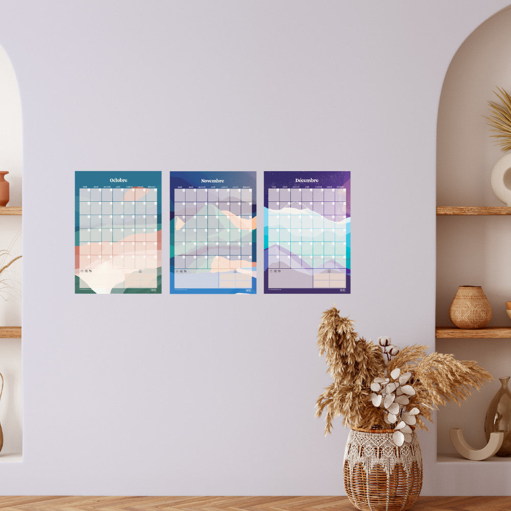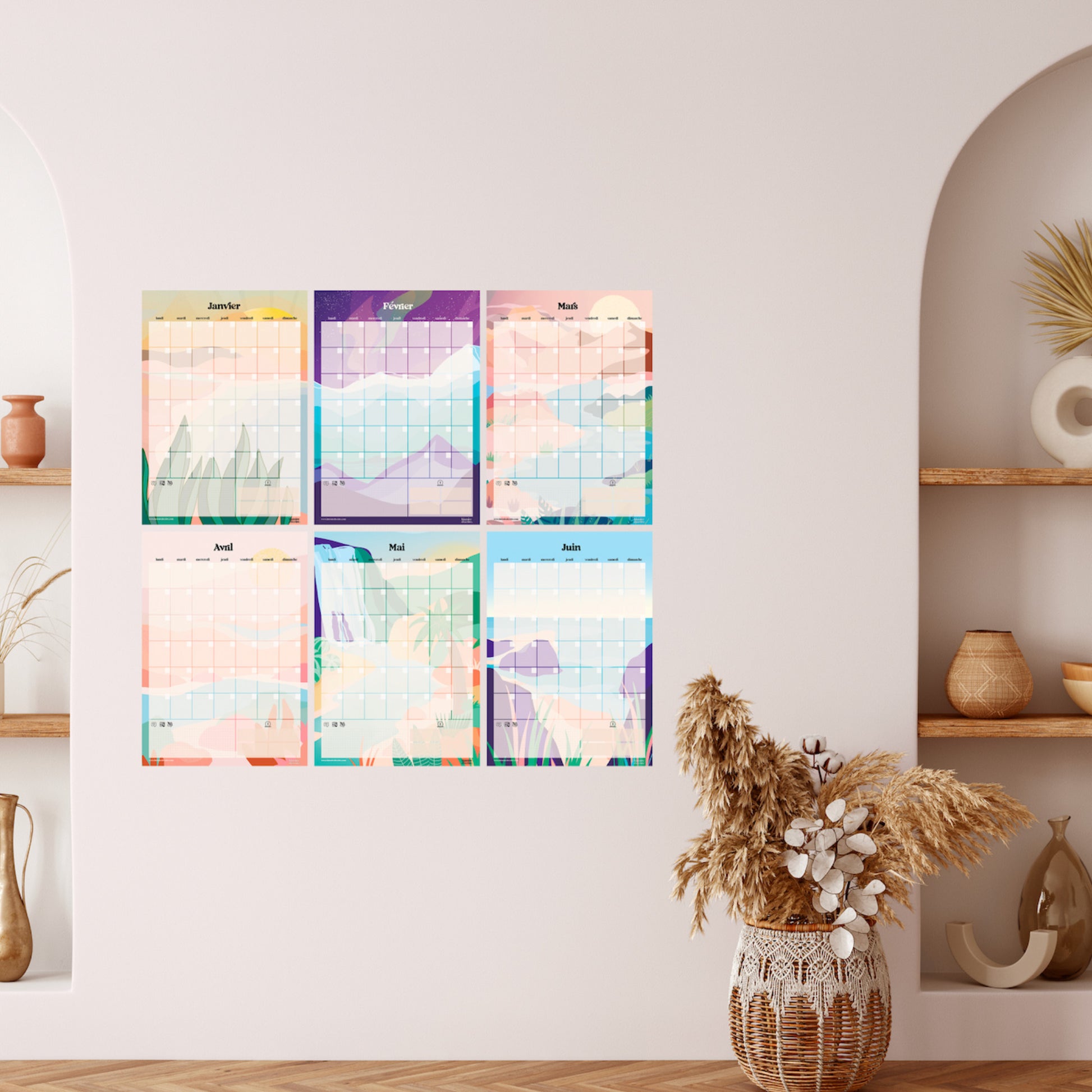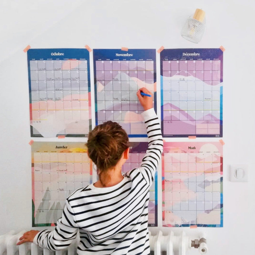 Accrochez-les tous sur votre mur en même temps pour obtenir un aperçu complet de l'année à venir / ou bien par 3 / par 6 ou tout seul - et ajoutez tous vos rendez-vous, anniversaires, événements : parfait pour votre organisation familiale ou professionnelle !