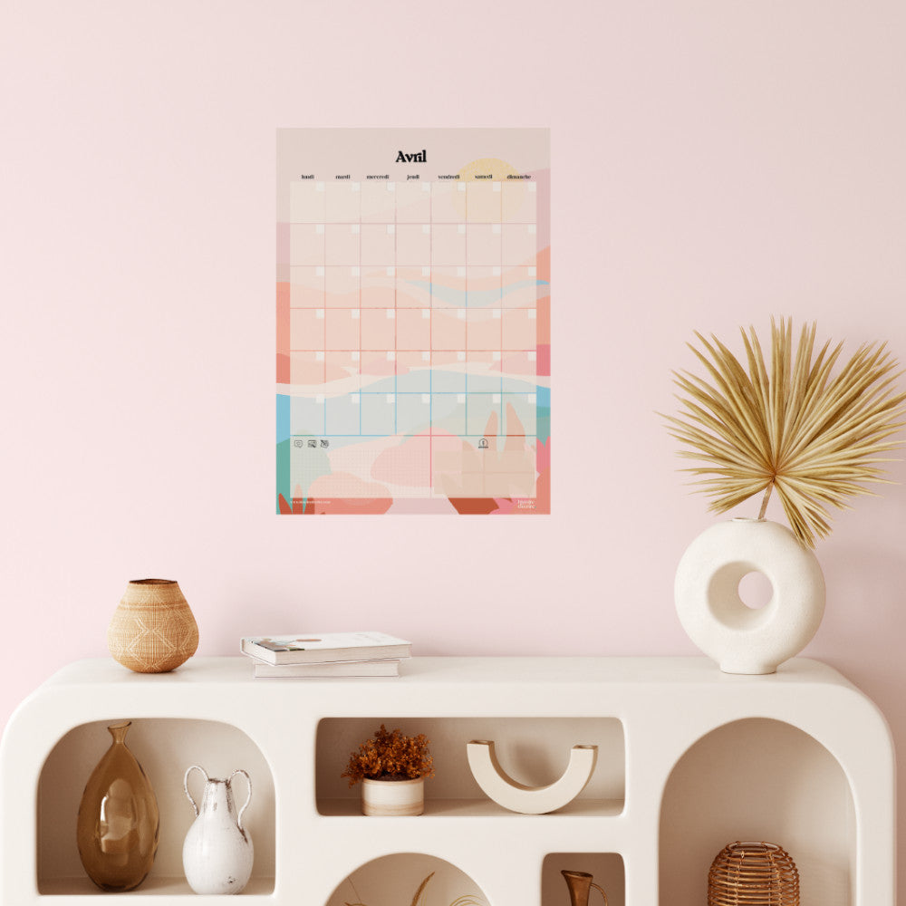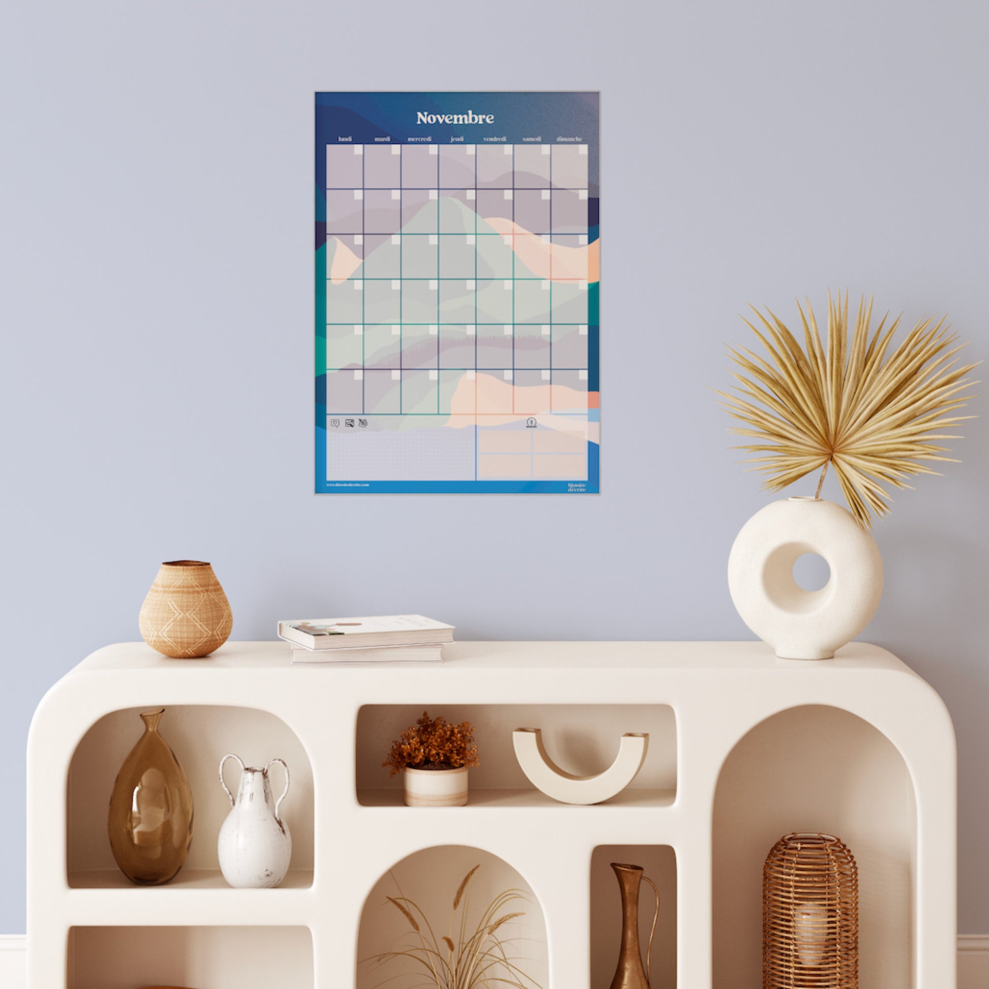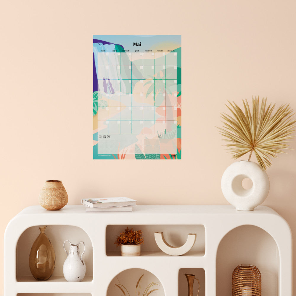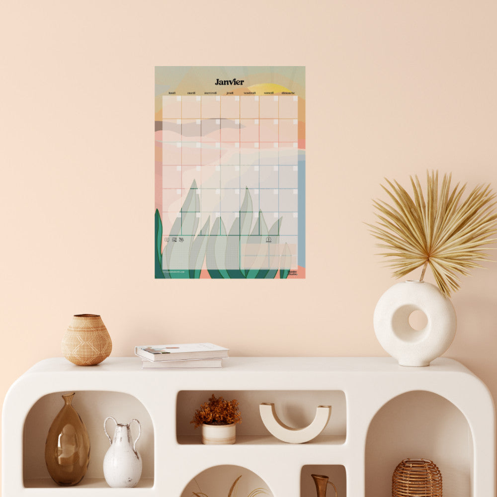 Grand calendrier mural mensuel / format A3 / 12 mois illustrés sans date