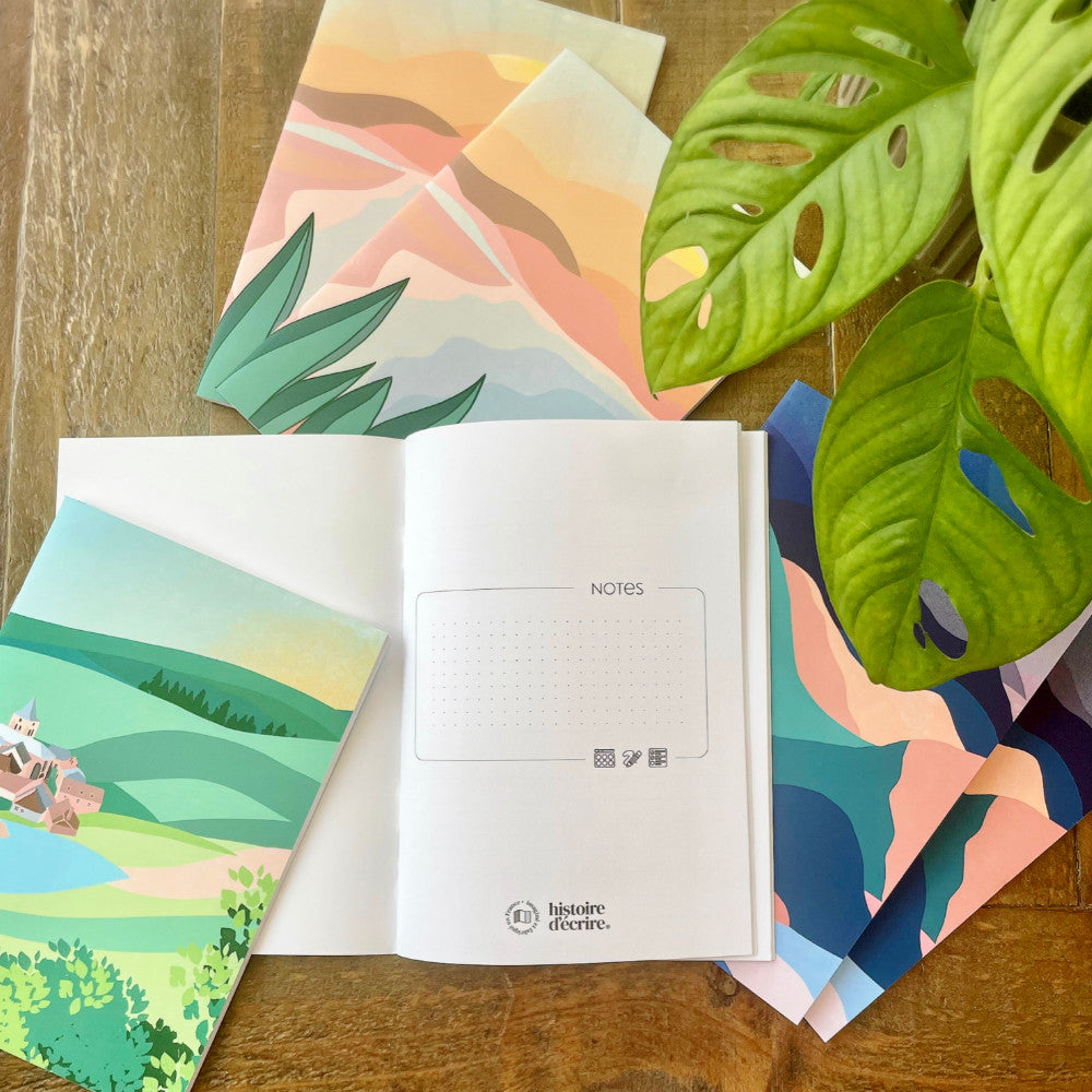 • 48 pages blanches et lignées face à face qui s'ouvrent bien à plat,